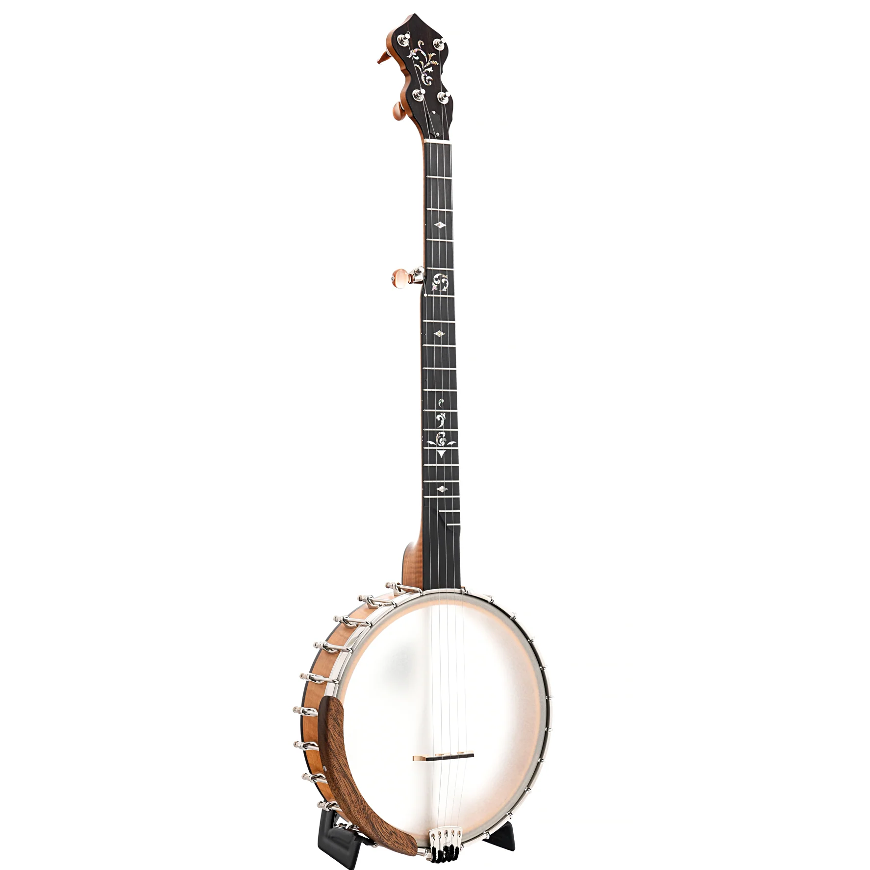 Beautiful banjo made in small 3-person shop using sustainably harvested wood. Curly maple neck & rim, scooped fretboard for over-the-neck play